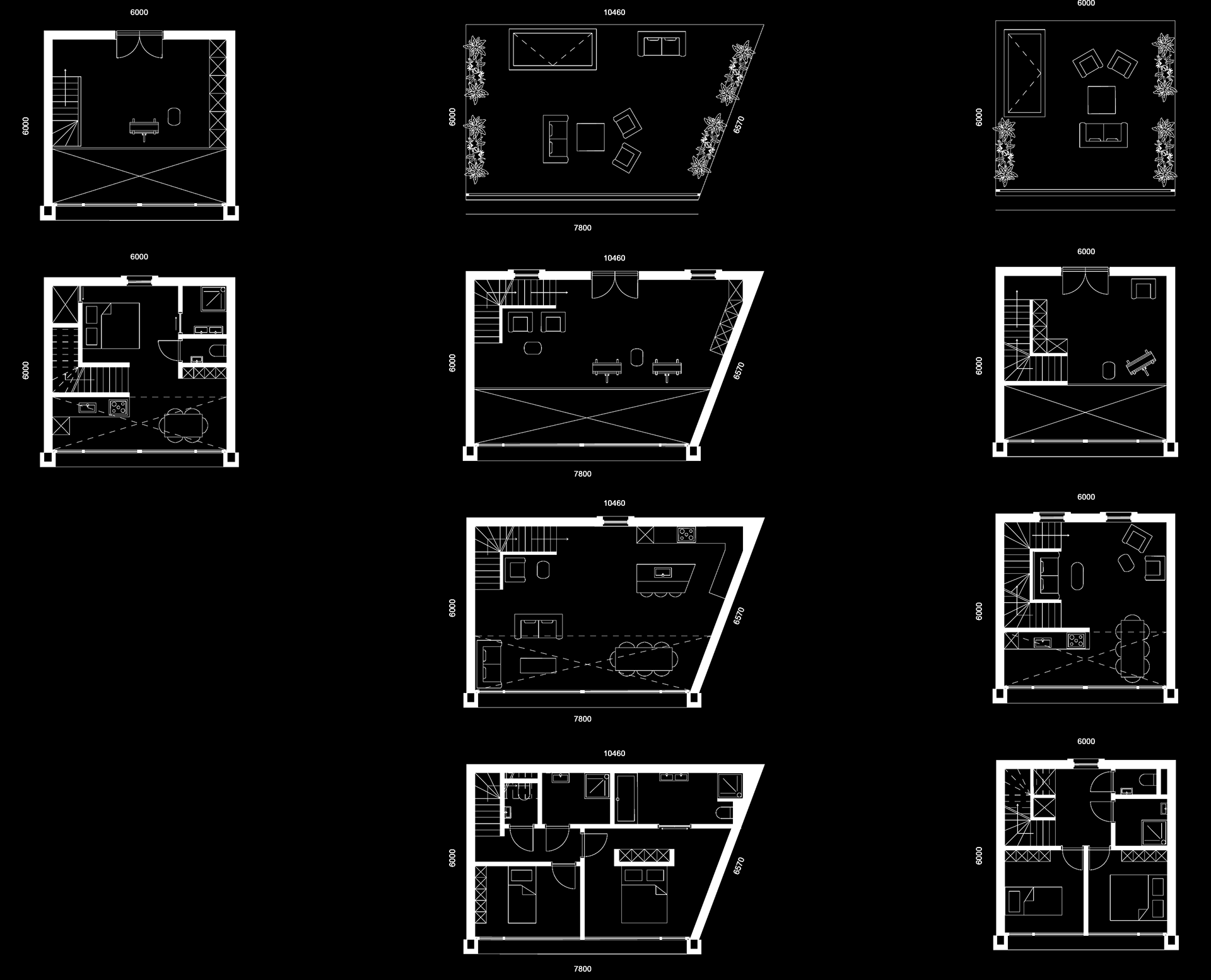 As mentioned earlier, the building is designed for artists. The residences are entirely based on this concept. In total, there are 6 types of dwellings. What characterizes all the residences is the fact that they are all multi-story, ranging f rom 2 to 4 levels. Additionally, the entrance to all the residences is situated on the upper floor where the private art-studio is also located, adjacent to a void that enhances natural light ingress in the level below. Furthermore, the dwellings consist of one or two bedrooms and either a private rooftop garden or a shared rooftop garden.