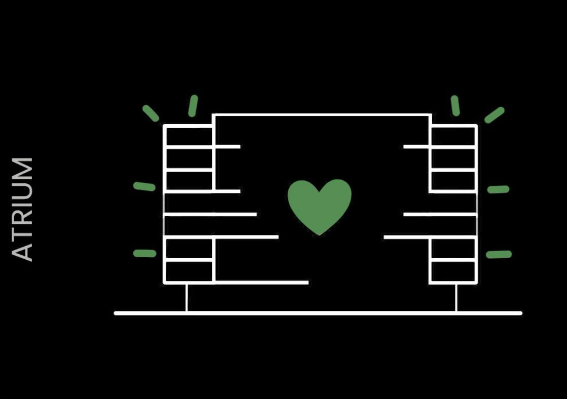 In this design studio, organized by KAAN Architects, a residential building had to be realized on the former Philips’ factory site ‘Strijp-S’ in Eindhoven with a minimum of 40 housing units. The studio focused on choosing and designing for a specific target group. Eindhoven and Strijp-S specifically are know for their innovative and creative identity. The residential building, Atrium-S, is therefore specifically intended for artists. With 8 levels and a total of 40 apartments, the building provides a special environment for this unique group. In addition to multi-level studio apartments, the complex includes spaces for art exhibitions, workspaces for artists and other residents, an art store, and a café.