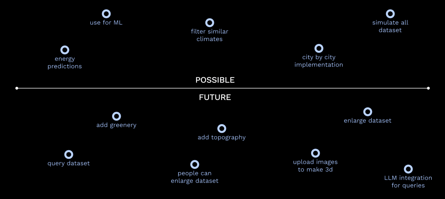 In the longer term, further expansion could include additional building samples, more contextual data layers such as topography or greenery, and integration of real-world measurements to complement simulated values. By broadening the dataset in this way, we move closer to creating a comprehensive, flexible, and open architectural resource that supports both scientific research and design innovation.