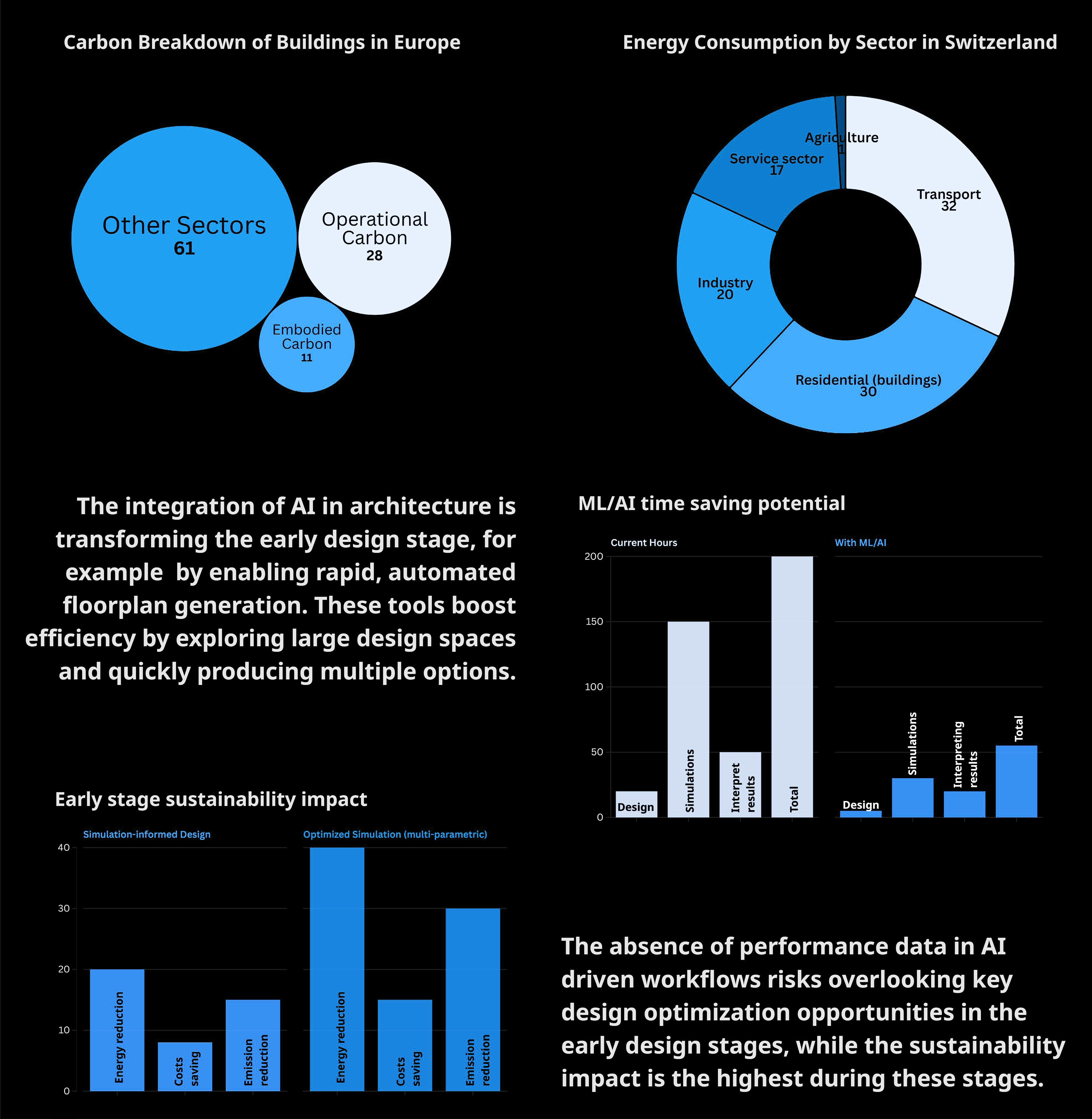Despite rapid advances in AI-assisted floorplan generation, most tools still optimize for speed and quantity rather than for how a layout actually performs (e.g., daylight & energy consumption). As a result, early design alternatives are often selected without quantified performance feedback—precisely when design decisions have the greatest leverage over lifecycle outcomes (Bragança et al., 2014; Weber et al., 2022).