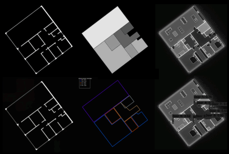 For room types, we generated PNG images and extracted outlines of each color group, exported them as SVG, and imported them into Grasshopper. Door locations were obtained using a Roboflow door detection model, which produced rectangles corresponding to door positions. All these preprocessing steps, including image enhancement, vectorization, and model-based detection, were performed in Visual Studio.