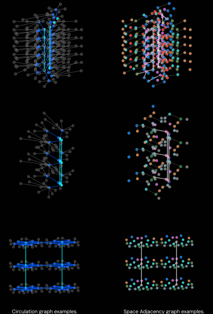 Finally, we export the graphs in CSV tables (nodes/edges), GraphML for interoperability, and a pickle/NetworkX snapshot for fast analysis, alongside simple QA reports that flag isolated spaces, unreachable components, and count mismatches between adjacency and circulation. The result is a pair of building graphs that are reproducible, queryable, and ready to cross-reference with your performance data and learning tasks.