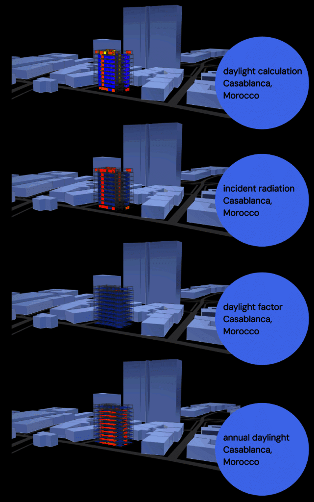 Each building takes approximately three minutes to load, which makes the process computationally demanding but still manageable for large-scale exploration. For every building, we already run four different environmental simulations (sun hours, radiation, daylight, and annual daylight) across four seasonal days in ten different climates. To account for variability and reduce bias, each building can be matched to up to three candidate cities/climates, which provides both flexibility and robustness in analysis.