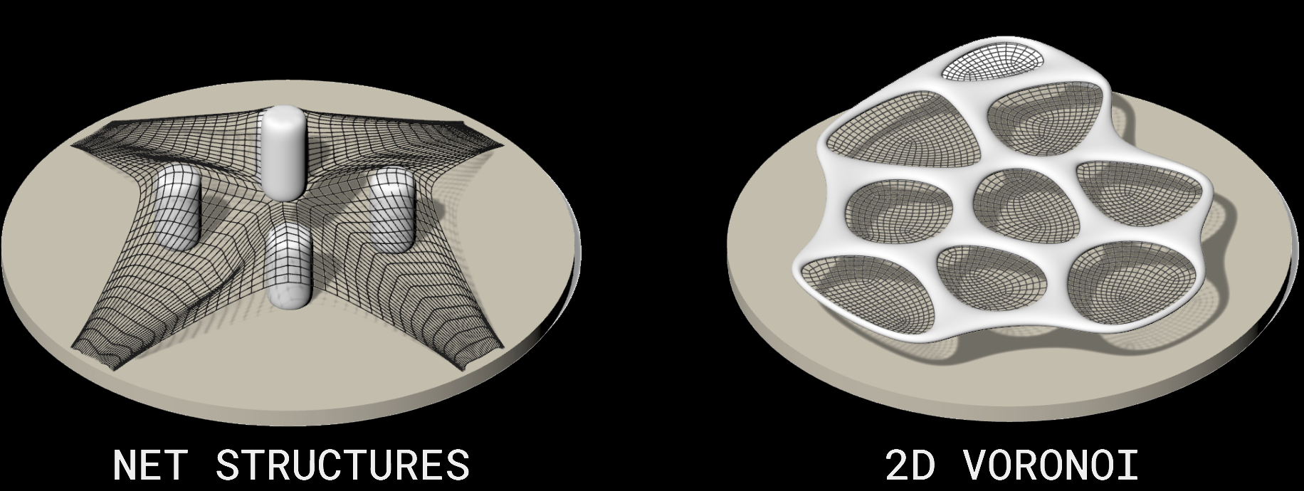 The brief was to design a temporary structure consisting of inflatables and tensile nets using Kangaroo plugin in Grasshopper.